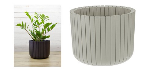Кашпо выглядят аккуратными компактными, не смотря на свою вместительность. Эффект объемных дощечек создается за счет декоративного ободка, при этом объем кашпо не уменьшается. Ободок также выполняет функцию ребра жесткости, что сохраняет прочность конструкции