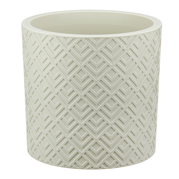 Кашпо выполнено в благородных тонах: белый ротанг и французский серый.
