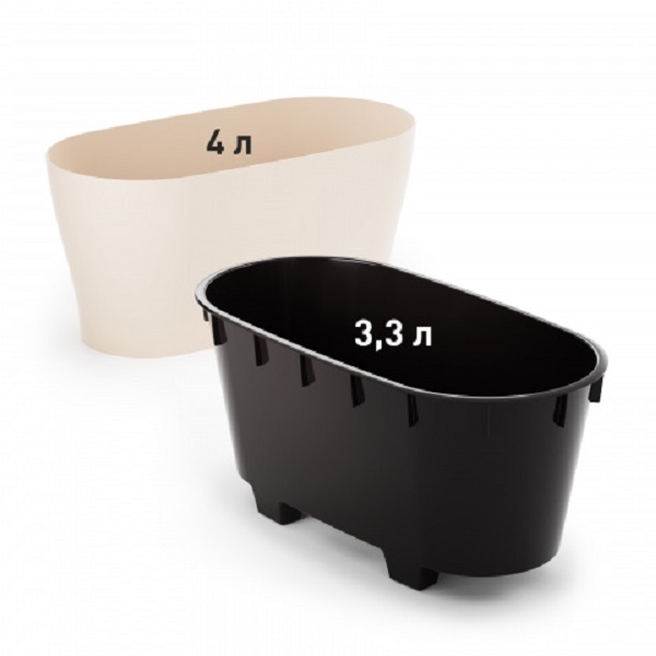 Горшок цветочный "Лея" овальный двойной (с автополивом) предназначен для выращивания кактусов, орхидей, суккулентов, фиалок и различных растений. Благодаря овальной форме оно идеально для посадки нескольких растений. Данный горшок станет идеальным дополнением к вашему интерьеру благодаря своему современному, минималистичному дизайну. Данный горшок обладает системой автополива. Благодаря данной системе вы сможете впредь не беспокоиться о проблемах перелива или высыхания растения. Цветочный горшок состоит из двух частей. Внутренняя вставка имеет отверстия и предотвращает перелив растений и загнивание корней. Внешняя часть защищает горшок от протекания, а также добавляет возможность удобно и быстро пересаживать растение.