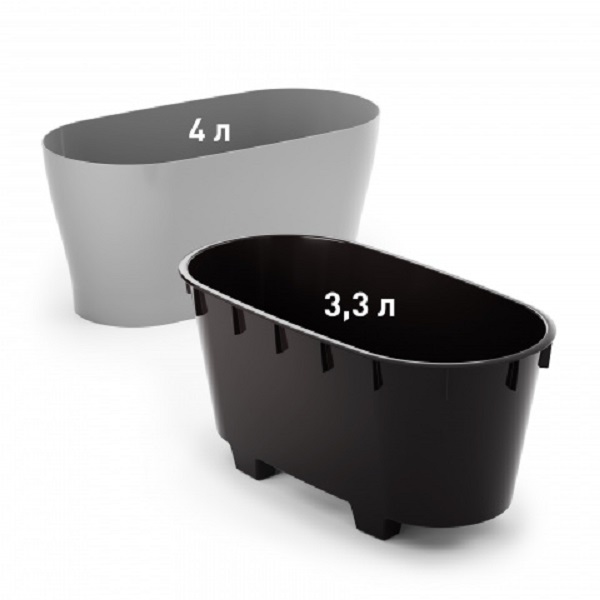 Горшок цветочный "Лея" овальный двойной (с автополивом) предназначен для выращивания кактусов, орхидей, суккулентов, фиалок и различных растений. Благодаря овальной форме оно идеально для посадки нескольких растений. Данный горшок станет идеальным дополнением к вашему интерьеру благодаря своему современному, минималистичному дизайну. Данный горшок обладает системой автополива. Благодаря данной системе вы сможете впредь не беспокоиться о проблемах перелива или высыхания растения. Цветочный горшок состоит из двух частей. Внутренняя вставка имеет отверстия и предотвращает перелив растений и загнивание корней. Внешняя часть защищает горшок от протекания, а также добавляет возможность удобно и быстро пересаживать растение.