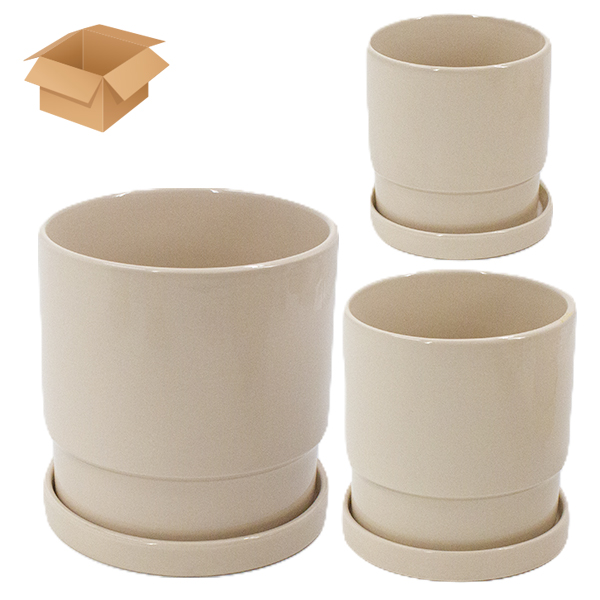 Кашпо керамическое 3шт с поддоном белый (Ø-11см h-12см / Ø-12см h-13см / Ø-16см h-17см)
