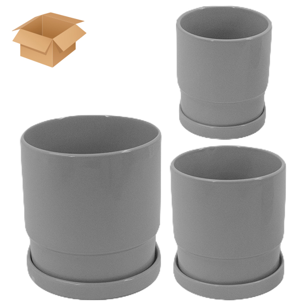 Кашпо керамическое 3шт с поддоном серый (Ø-11см h-12см / Ø-12см h-13см / Ø-16см h-17см)
