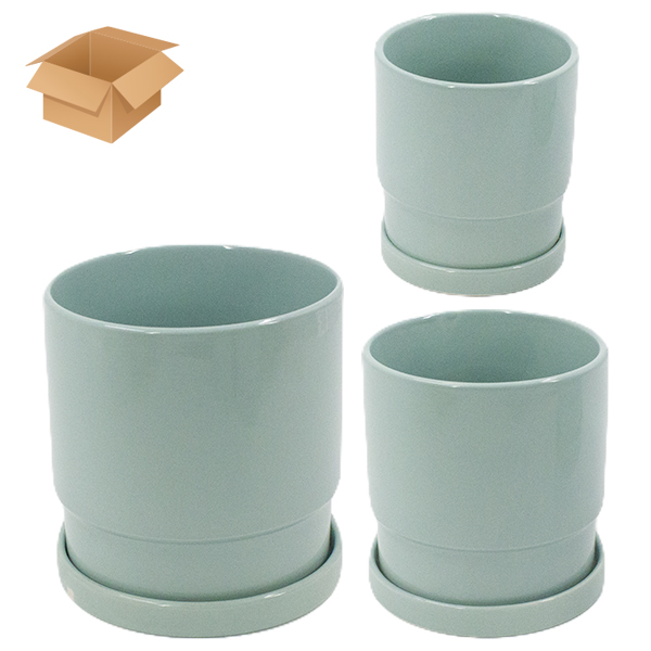 Кашпо керамическое 3шт с поддоном голубой (Ø-11см h-12см / Ø-12см h-13см / Ø-16см h-17см)