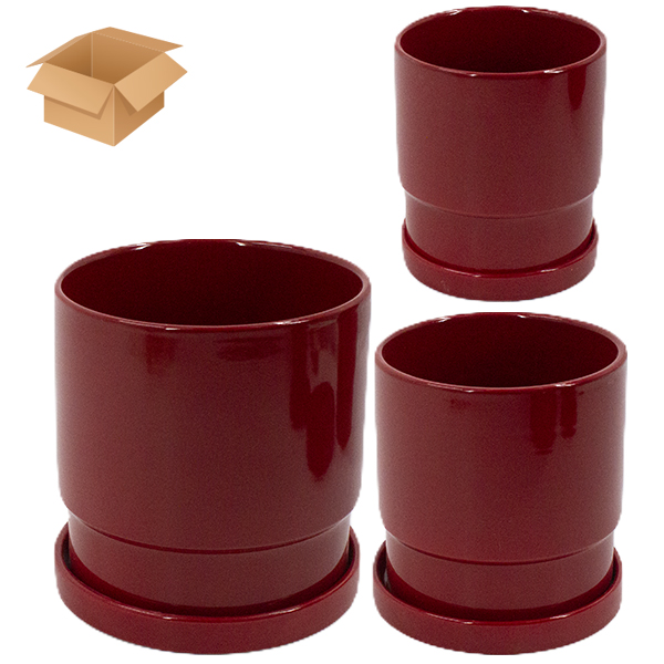 Кашпо керамическое 3шт с поддоном красный (Ø-11см h-12см / Ø-12см h-13см / Ø-16см h-17см)