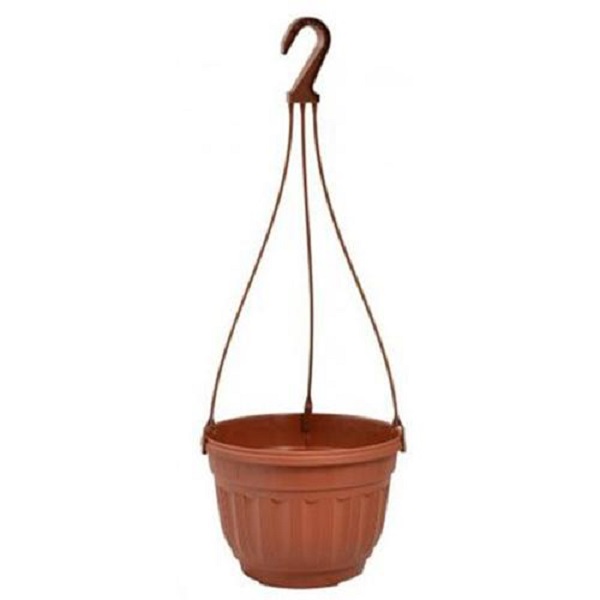 Горшок для цветов можно подвесить на балконе, на открытой террасе или в летнем саду, украсив пространство живыми цветами и создав натуральный акцент. В горшок помещается 3,75 литра земли — этого хватит, чтобы часто не пересаживать растения, когда они начнут разрастаться. Красивый терракотовый оттенок будет удачно сочетаться с мебелью и предметами декора. Пластик, из которого изготовлен контейнер, мало весит, его легко мыть от грязи и пыли.