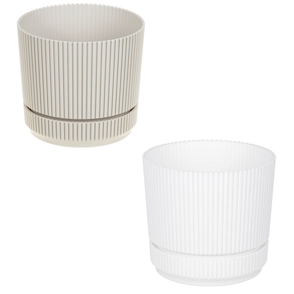 Кашпо состоит из двух частей: корпуса и поддона — используется для сбора лишней воды. На кашпо между корпусом и поддоном есть щель, благодаря которой лишняя вода испаряется и не застаивается.