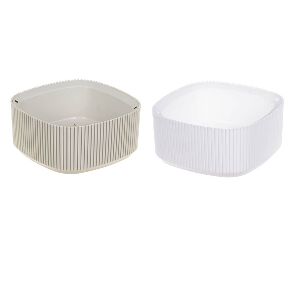 Кашпо состоит из двух частей: корпуса и поддона — используется для сбора лишней воды. На кашпо между корпусом и поддоном есть щель, благодаря которой лишняя вода испаряется и не застаивается.