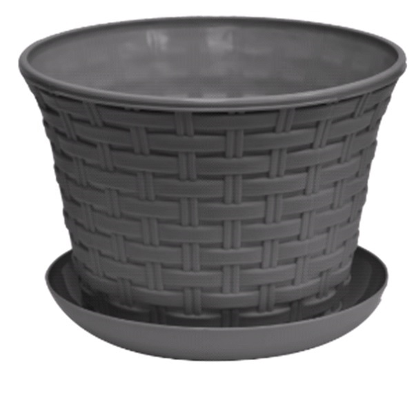 Кашпо круглое "Ротанг" 2,1л с поддоном (т.серый) (то)
