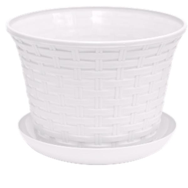 Кашпо круглое "Ротанг" 3л с поддоном (белый) (то)
