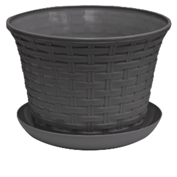 Кашпо круглое "Ротанг" 4л с поддоном (т.серый) (то)