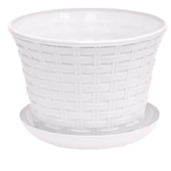 Кашпо круглое "Ротанг" 6,1л с поддоном (белый) (то)