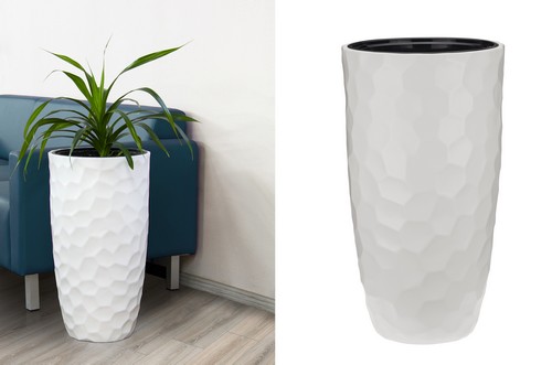 Кашпо комплектуется вкладышем, высота которого меньше высоты кашпо. Это позволяет экономить количество почвы и высаживать растения с любой корневой системой. Вкладыш, оснащён удобными ручками, которые позволяют перемещать растение без основного корпуса кашпо.