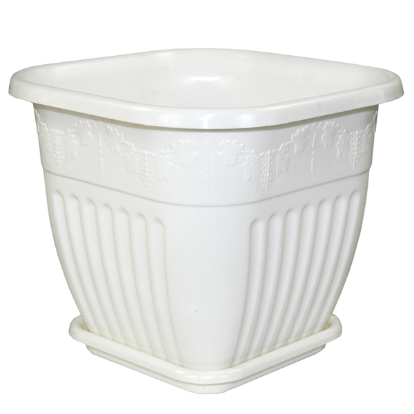 Горшок-кашпо "Лозанна" 5л с поддоном квадр. (белый)(то)