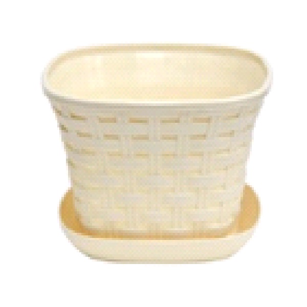 Кашпо квадратное "Ротанг" 9,1 л с поддоном (слоновая кость) (то)