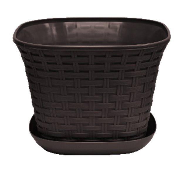 Кашпо квадратное "Ротанг" 6,9л с поддоном (венге)(то)