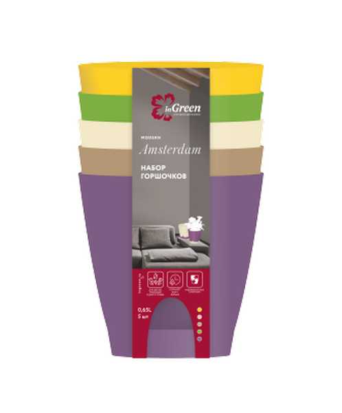 Набор горшочков для цветов AMSTERDAM D110mm / 0,65l с прикорневым поливом 5шт(микс)(то)