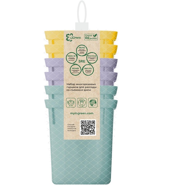 Набор горшочков для рассады InGreen со съемным дном с подвесом 6х400мл (микс)