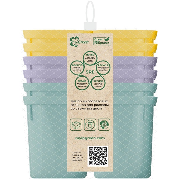 Набор горшочков для рассады InGreen со съемным дном 12х200мл (микс)