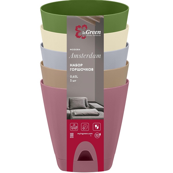 Набор горшков для цветов AMSTERDAM D110mm/0,65л 5шт. (то)