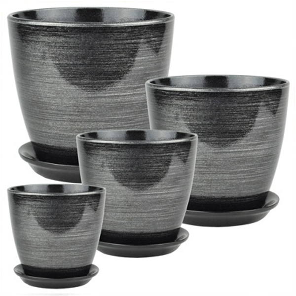 Комплект горшков Роспись бутон черн/серебро кмпт из 4-х (РС 28)