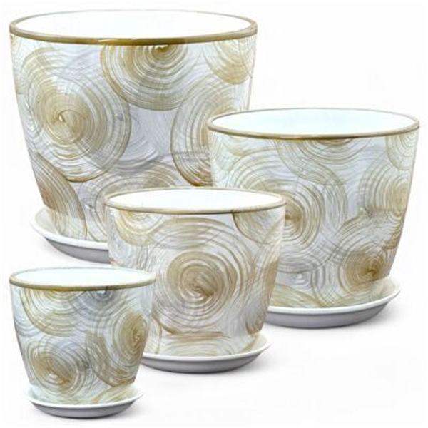 Комплект горшков Роспись бутон сатурн белый кмпт из 4-х (РС140)