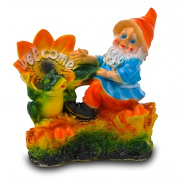 Фигура Гном с лягушкой на бревне