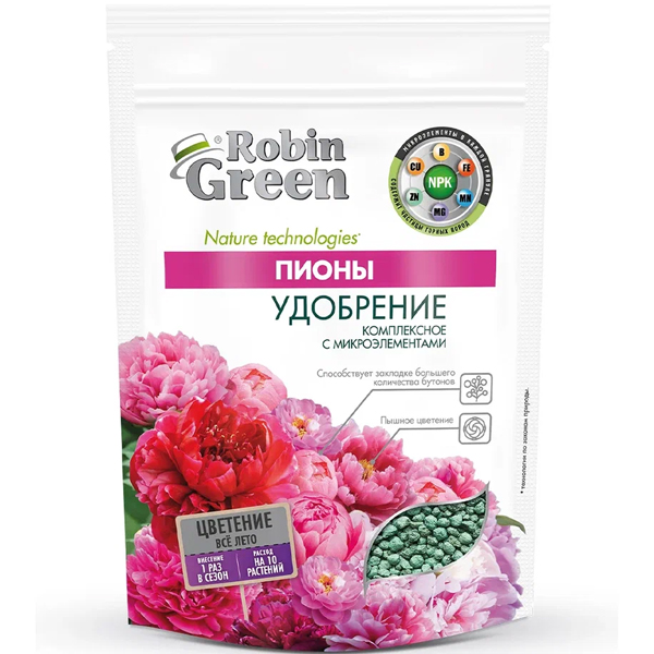 Удобрение сухое Робин Грин минеральное гранулированное Пионы дойпак 1кг