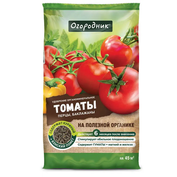 Удобрение сухое Огородник органоминеральное для томатов гранулированное 0,9 кг
