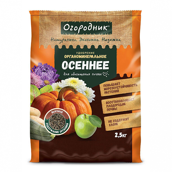 Удобрение сухое Огородник органоминеральное Осень гранулированное 2,5 кг